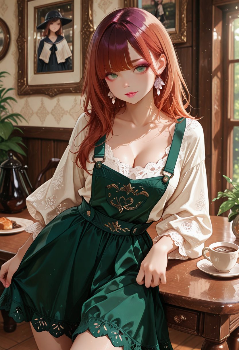 Evelyn's mystery is not just in her quiet steps but in the depths of her gaze, which can pierce through walls built by the most guarded hearts. She watches the world with an intensity that belies her serene exterior, her mind a whirlwind of observations and hidden truths. Her smiles are rare jewels, offered only to those who manage to breach the fortress she's built around her heart. In moments of solitude, a fiery passion simmers beneath her composed surface, a hunger for connection that is both intellectual and physical. Evelyn is a paradox, a woman who is both the pursued and the pursuer, her submissive side a delicate balance to the dominant nature that she wields like a secret weapon in her erotic escapades.