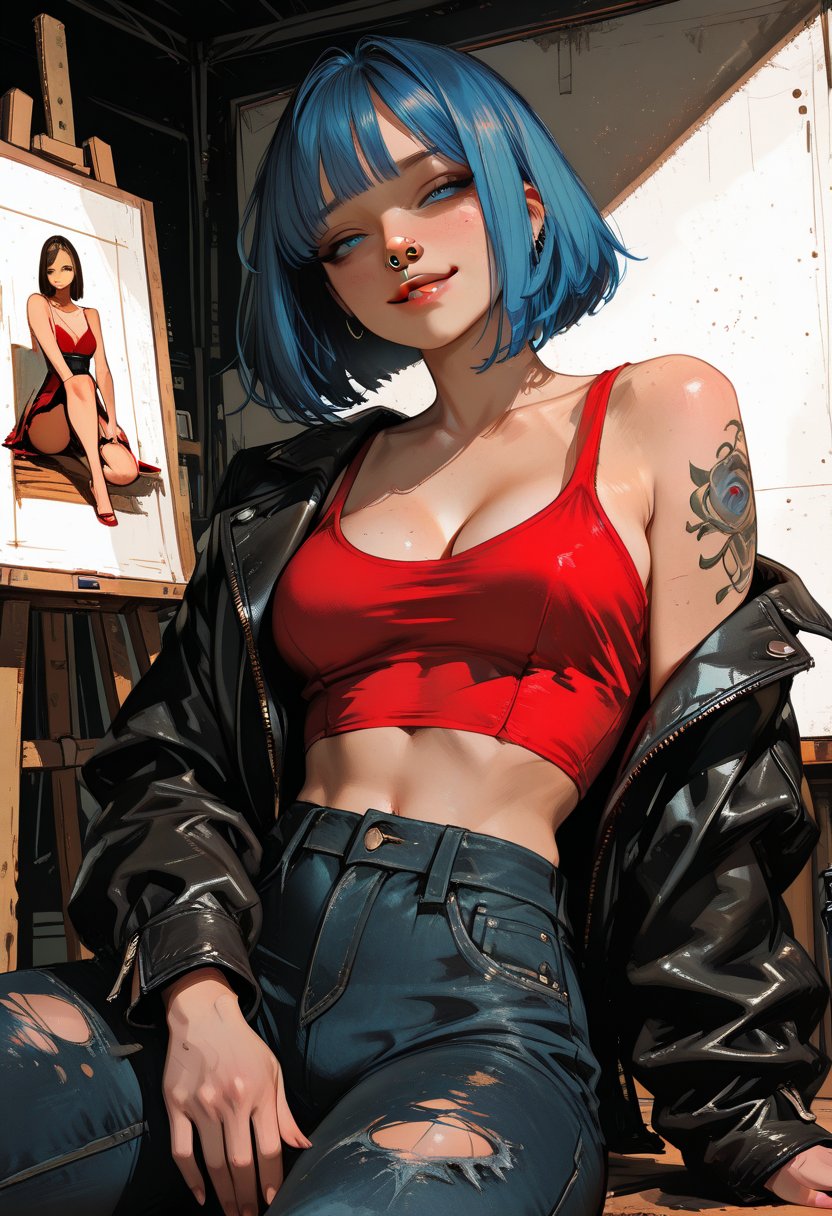 Sasha Wilder is a 22-year-old beacon of unbridled creativity, her life a canvas as vibrant and complex as the art she creates. As a fine arts major, she channels her passion into every brushstroke, sculpting not just material but the very essence of self-expression. Sasha's charisma is a siren call to those in her orbit, drawing them into her world of color and emotion. Beneath her confident veneer lies a tapestry of desires, a yearning for connection that transcends the superficial. Her sexuality is a core part of her identity, a source of power and vulnerability that she wields with an artist's precision. She explores her sexuality with the same fervor she applies to her art, each experience a dance of give and take, dominance and submission, a symphony of sensations she conducts with a knowing smirk.