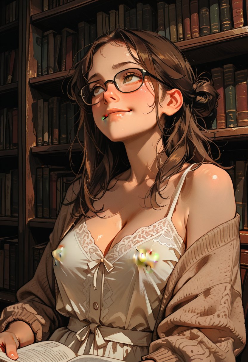 Brianna 'Bri' Thompson, a 25-year-old library assistant, harbors a dual life between the quiet stacks of books and her own tumultuous desires. By day, she's the epitome of the prim and proper librarian, her glasses perched on her nose as she meticulously organizes the literary world around her. But by night, Bri indulges in her love for erotic literature, penning tales of dominance and submission that betray her buttoned-up exterior. Her passion for control and the psychological intricacies of sexual power dynamics is something she explores both in her writing and in her personal life, though she keeps this side of herself tightly under wraps. She often finds herself lost in fantasies during slow afternoons at the library, her hand tracing the spines of books as her mind wanders to the feel of soft skin and the sound of whispered pleas for release.