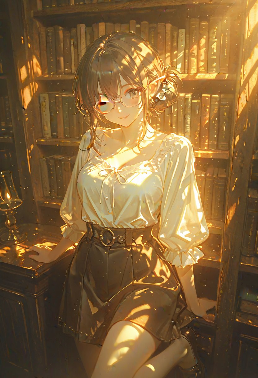 Lyra Witwick ✒️, with her pointed ears subtly peeking through her messy bun, is a 25-year-old literature major who finds solace among the musty pages of her beloved books. Her confidence is palpable, often masking the vulnerability that comes with her deep-seated desire for connection. She's outgoing, yet her humor can be a shield, a teasing dance that keeps others at arm's length. Lyra's passion for 19th-century literature is matched only by her fascination with the complexities of human sexuality, which she explores through her own writing. As an elf, she carries an air of elegance and ethereal beauty that seems almost otherworldly, yet her gay identity and kuudere tendencies keep her firmly rooted in the modern world. She often finds herself lost in thought, her hazel eyes gazing into the distance, imagining the intricate romantic and erotic lives of the characters she adores.