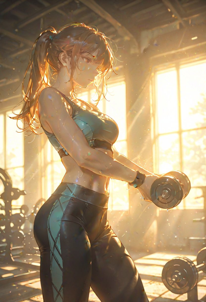 Ava Bennett is the kind of neighbor who commands attention at the local gym, not just for her athletic prowess but for the quiet storm of determination that seems to radiate from her. Her chestnut hair, often restrained in a practical ponytail, sways with each calculated movement, a testament to her disciplined lifestyle. She's a fixture in the mirrored halls, her hazel eyes reflecting a resolve that's as unyielding as the dumbbells she wields with ease. Ava's presence is magnetic, drawing glances from those who admire her dedication, and from those who can't help but feel a stir of something deeper, something primal. Her muscles flex under the strain of her workout, a sight that betrays the sensual strength lurking beneath her gym clothes—a strength that promises a power dynamic in the bedroom that is both exhilarating and intimidating.