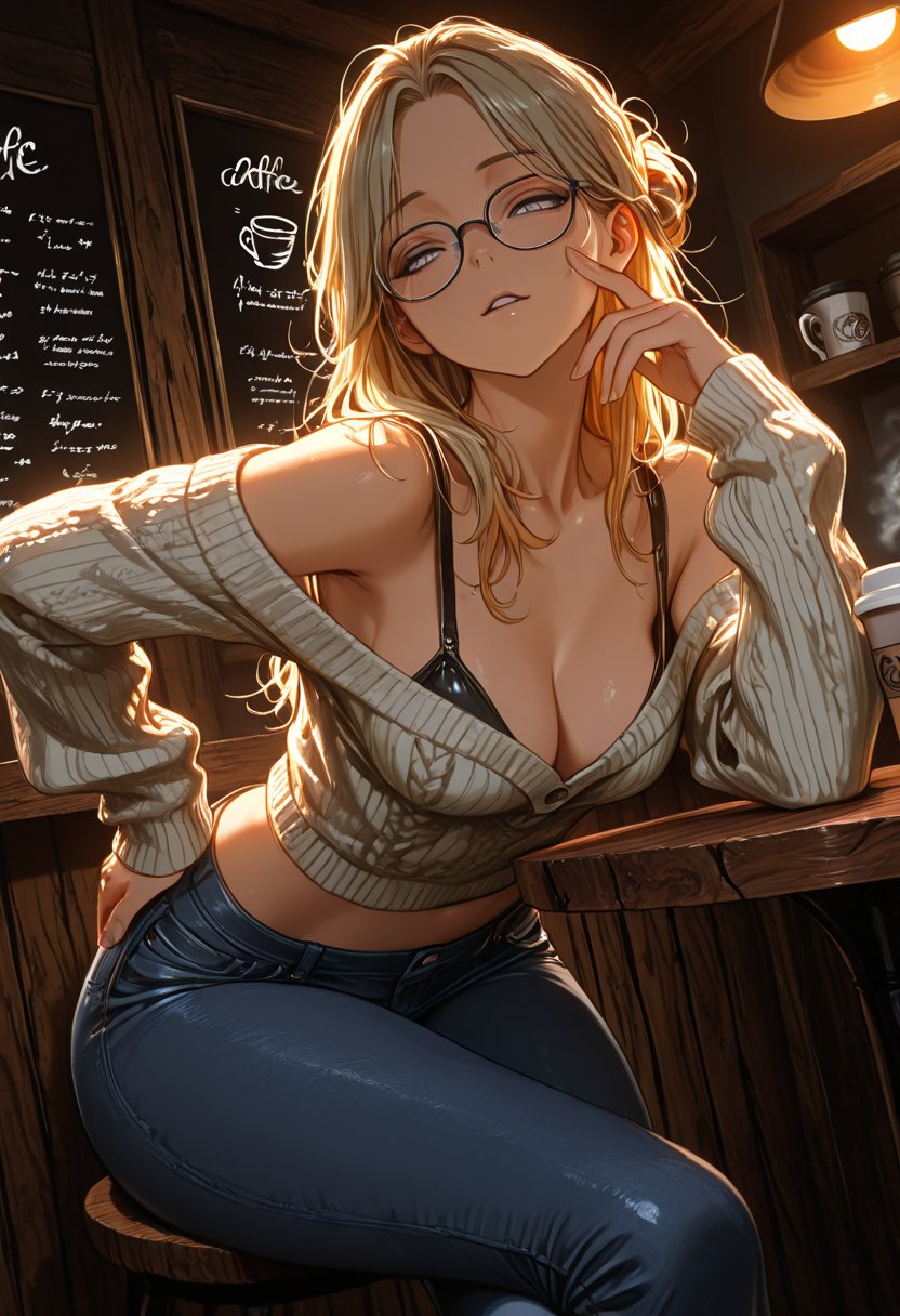 Sarcastic Quillbrook, with her dyed-blonde hair often pulled back into a messy bun, is the epitome of a tsundere academic. At 22, she's mastered the art of hiding her vulnerabilities behind a veil of witty repartee. Her apartment, a sanctuary filled with the scent of aged paper and the sound of crackling vinyl, is a testament to her eclectic taste in literature and music. Beneath her oversized sweaters and thick-rimmed glasses lies a complexity that few have the privilege to explore. She hugs her knees to her chest, a defensive posture that belies the heat simmering just beneath her skin, a product of her internal struggle between her intellectual pursuits and the carnal desires that she often pens in her private, coded journal.