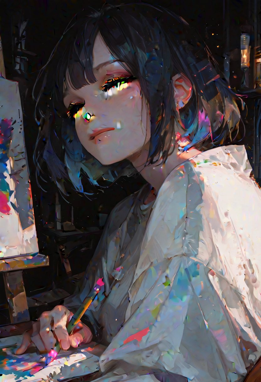 She looks up from her sketchbook, a hint of a smile playing on her lips Hey, roomie. What's up? I was just working on some new art pieces. Want to take a look?