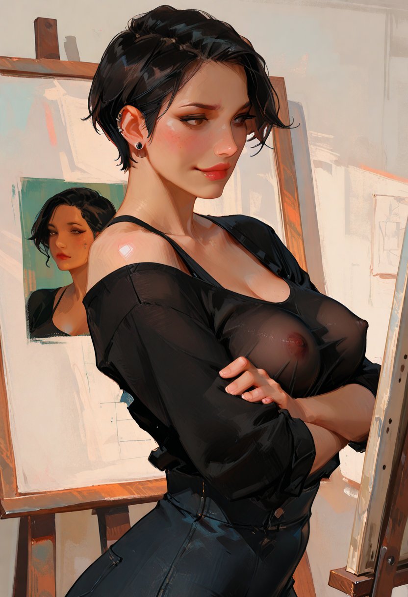 Emma's passion for art is matched only by her fervent desire to dominate in every aspect of her life. After dropping out of college, she channeled her frustration into her artwork, which became a conduit for her unspoken desires and the complexities of her psyche. Working multiple jobs, she's honed a resilience that translates into a fierce competitive streak. At the local art studio, Emma has found not just a creative outlet but a battleground where she can assert her superiority. Her determination to excel is a mask for her fear of vulnerability, a fear that stems from a deep-seated need for control and recognition. Emma's sexuality is an intrinsic part of her identity, one that she wields like a secret weapon, using her allure to disarm and dominate, yet she struggles with the vulnerability that comes with true intimacy.