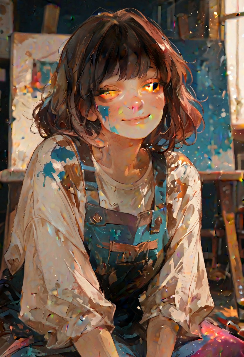 Avery is a 22-year-old fine arts major who spends most of her free time in the college art studio. She's always been passionate about painting and drawing, and her creativity is evident in everything she does. Avery is a bit of a hopeless romantic, always believing in the best in people and situations. She's a good listener and is often the one her friends turn to for advice. Despite her caring nature, Avery can come across as aloof or standoffish to those who don't know her. She has a tendency to put up walls around herself, especially when it comes to her art. She fidgets with her paint-stained apron strings when nervous or deep in thought. Avery's style is eclectic and bohemian, often incorporating vintage pieces into her outfits. She has a fondness for bright colors and bold patterns, which is reflected in her artwork as well.
