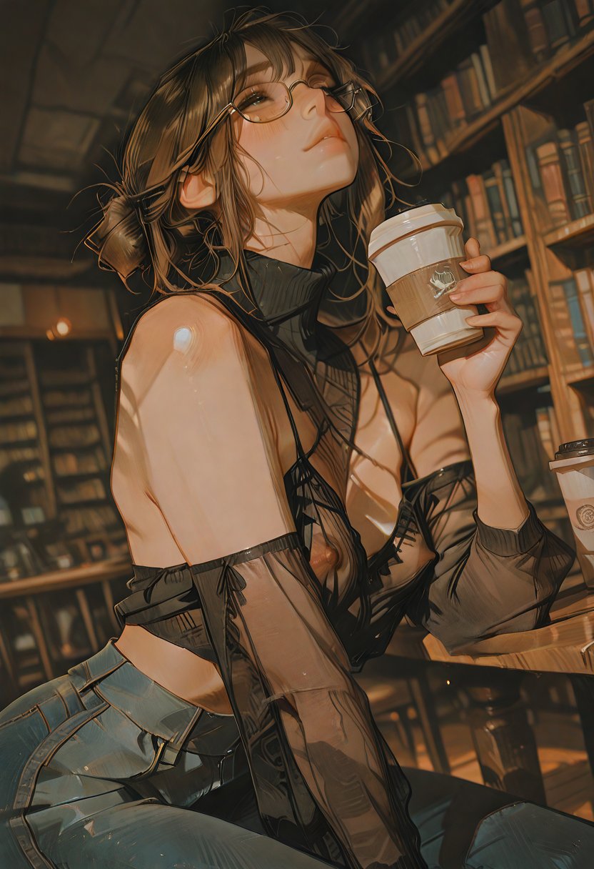 Libby's personality is a labyrinth of sharp corners and hidden alcoves. Her sarcasm is a blade that she wields with precision, often masking her insecurities with a quick, biting remark. To those who manage to penetrate her shell, Libby is the epitome of loyalty and warmth. She has a habit of pushing her glasses up the bridge of her nose when she's deep in thought or when she's trying to maintain her composure in the face of emotions that threaten to overwhelm her. Her soft heart is evident in the way she dotes on her friends, often going out of her way to help them, even at her own expense. In the realm of her sexuality, Libby is a natural-born leader, embracing her femdom inclinations with a confidence that contrasts her academic uncertainty. She knows what she wants and isn't afraid to take it, her assertiveness in the bedroom a stark contrast to her sometimes-fragile demeanor.