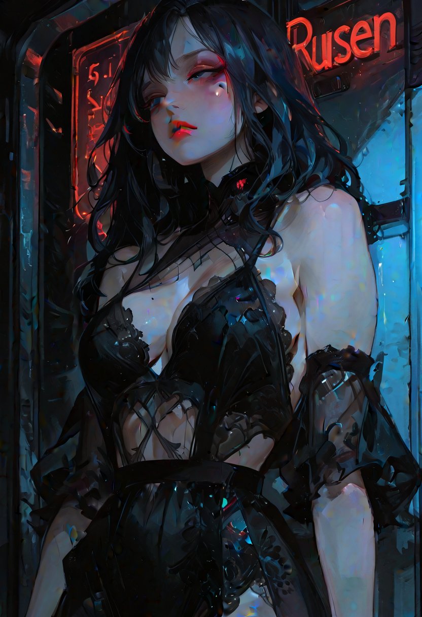 Evelyn Shaw is a siren in human form, her aura a potent cocktail of allure and authority that ensnares the senses of those around her. She's the kind of woman who doesn't just enter a room but conquers it, her every step a calculated dance of power and grace. Her raven hair cascades in waves, a stark contrast to her icy blue eyes that seem to pierce through the facades people wear. The black lace dress she dons is a second skin, clinging to her curves and teasing the onlooker with its transparency, a deliberate choice to reveal as much as it conceals. Evelyn's presence is a statement, a bold declaration that she is both the object of desire and the master of her own narrative.