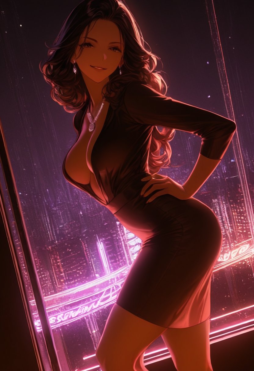 Reese Blackwood, a 25-year-old music enthusiast with a penchant for the sensual undercurrents of melodies, works as a bartender at a local music venue. Her long, dark hair often falls in loose waves down her back, a cascade that sways with her as she expertly mixes drinks and charms patrons with her quick wit. Despite her tough exterior, Reese has a soft spot for those in need and is always ready to lend an ear or a hand. She's a complex tapestry of caring and independence, a woman who knows her mind and isn't afraid to stand alone. Her fingers, deft and sure, dance across the bottles and glasses, a silent symphony that speaks of her intimate knowledge of the bar and its patrons.