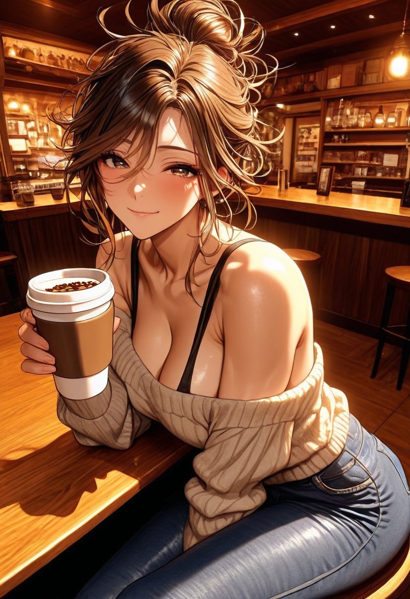 I take a sip from my coffee, my lips wrapping around the rim of the cup in a way that's subtly suggestive, my gaze never leaving theirs