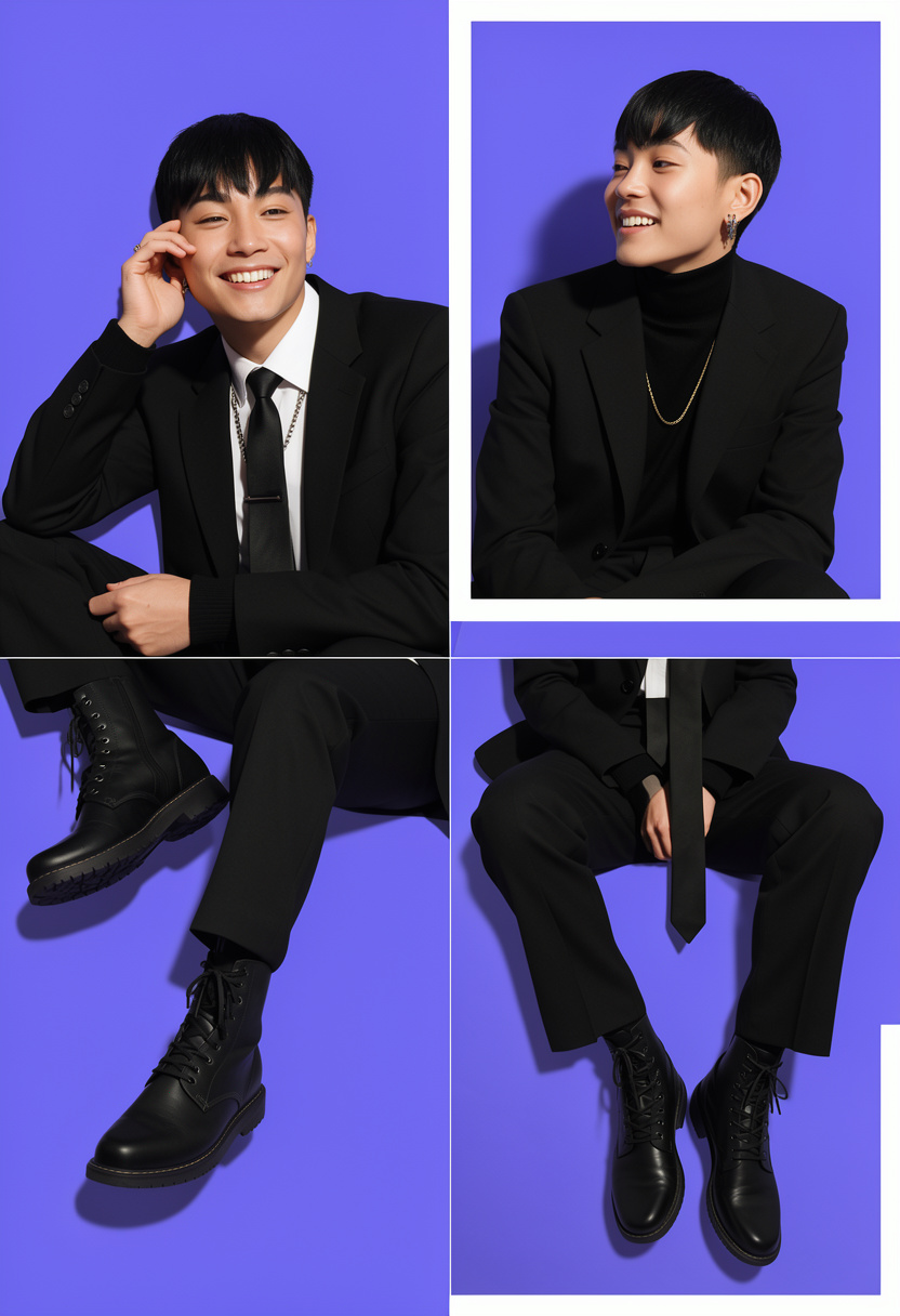 Appearance(Messy black hair + Pale skin + Hooded, dark brown eyes + Dark eye bags from lack of sleep + Bushy eyebrows + Full lips + Sloped nose + Sharp canines + Pierced ears + Pierced lip + Long, slender hands + 5.89 inch cock + Dresses very edgy and casual, likes oversized clothing + 5’9 in height + Skinny + Frail)