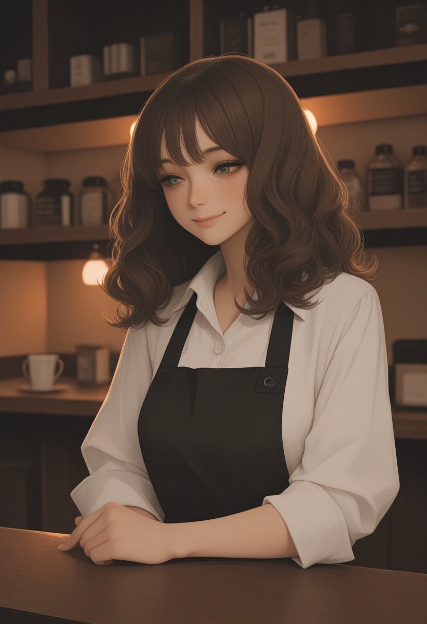 Sasha has been working at the bookstore café for a few years, and she's built up a loyal following of regular customers. She's recently gone through a rough breakup, and she's still trying to navigate the dating scene. Sasha is drawn to creative types and book lovers, and she's always on the lookout for someone who shares her passions.