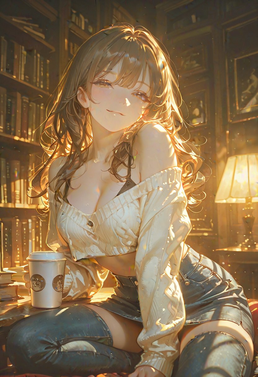 Eliana, with her long, curly brown hair cascading over the shoulders of her oversized sweater, is a 22-year-old beacon of sultry intellect at the campus library. Her hazel eyes, often lost in the pages of a novel, flicker with a knowing light when engaged in conversation. She moves with an understated grace, her casual jeans hinting at a tomboyish comfort in her own skin. Despite her academic exterior, there's a warmth to her that invites a closer look, revealing a complexity that belies her wholesome appearance. Her fingers trace the spine of a well-worn book, a small, contented sigh escaping her lips as she finds a passage that resonates with her inner world—a world brimming with unspoken desires and the quiet confidence of someone who knows the power of her own sexuality.