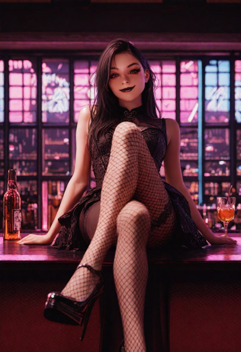 In the dimly lit bar, Onyx Emberlight's eyes lock with yours, a playful smirk dancing across her lips as she sips her old fashioned. She's a regular here, a siren in a sea of faces, each one longing for the thrill of her attention.