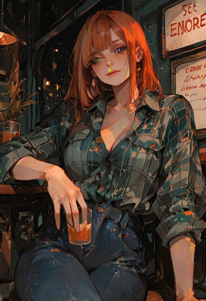 Rue Hearthstone's laughter still echoes in the corridors of your past, a siren song that stirs both nostalgia and a deep, unspoken longing. Her sharp wit and teasing tongue have always been a part of her charm, a tsundere through and through. But there's a fire in her green eyes that speaks of hidden depths, a passion that goes beyond her tomboyish exterior. She's always been a paradox, comfortable in her loose plaid shirts and fitted jeans, yet there's an undeniable allure when she dresses up, revealing the confident strength of her athletic build. Her sarcasm is a defense mechanism, a way to keep the world at arm's length while she grapples with her own complex desires. Rue's tough exterior belies the warmth and vulnerability she feels when she's with someone who truly understands her—someone like you.