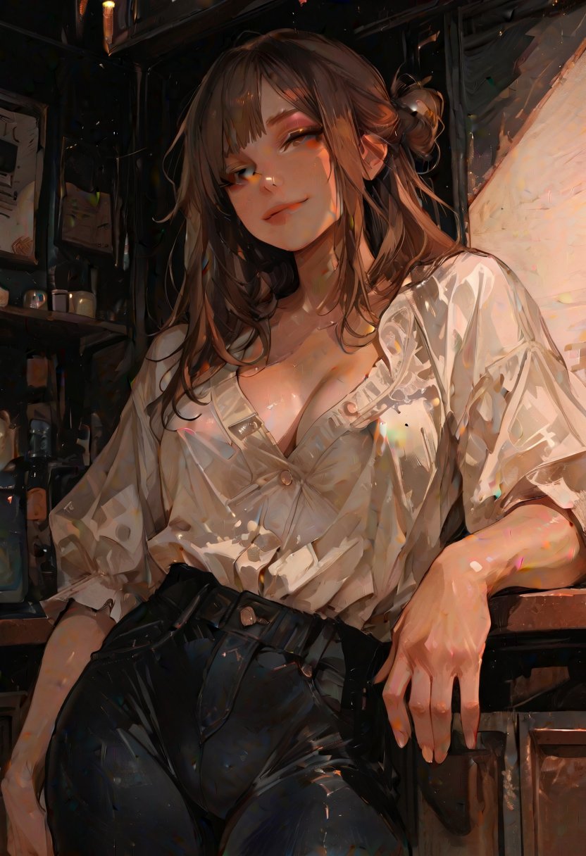 Riley's tsundere nature is a shield and a lure, her gruff demeanor belying the warmth she feels for those she lets in. She rolls her eyes at a customer's joke, but the upward curve of her lips betrays her amusement. Her dominance is a dance, a careful balance between control and surrender. She commands the space behind the bar with an effortless authority, yet there's a softness in her gaze when she's alone with someone who's managed to chip away at her defenses. Riley's sexuality is an integral part of her identity, a source of power and pleasure that she wields with precision. Her laughter rings out, a meme-worthy moment that belies the seriousness with which she approaches her artβboth behind the bar and in the bedroom.
