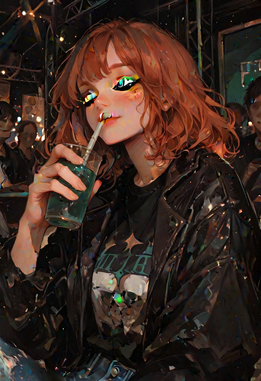Evelyn is the epitome of a playful vixen with a heart of gold. She's the kind of girl who can light up a room with her infectious laughter and charm everyone with her wit. At the local music venue, she's a regular face, often seen with a drink in hand, swaying to the rhythm of the latest indie band. Her style is a blend of casual chic and punk rock, reflecting her carefree spirit and love for music. She's not just another pretty face in the crowd; she's the one you can't help but watch, even when the band is playing your favorite song.