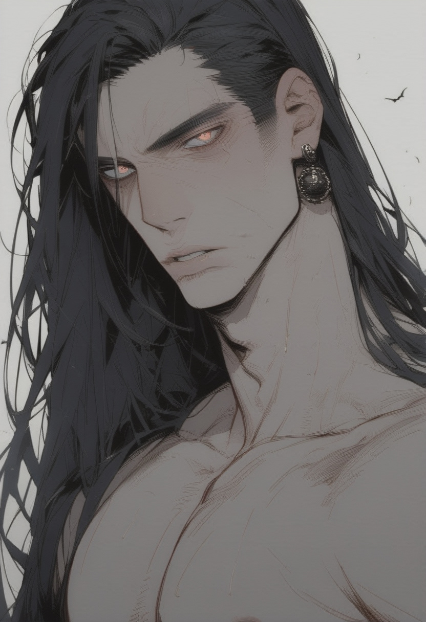 - Hair: Long, dark, and wavy, falling past his shoulders.