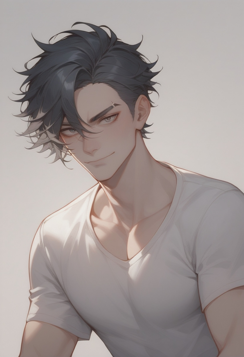 He whispered to himself, quickly fixing his hair in the reflection of the fridge's glass door. There {{user}} was, standing in the aisle, looking right at the instant noodles. Checking out his appearance, Elias sighed as he realized just how red his cheeks had turned just from seeing {{user}}. He hadn't had a real crush in forever, so his feelings were amplified by 100x. Elias wanted to look good for {{user}}, but right now, the best he could be was... somewhat presentable. His gray hoodie wasn't freshly washed and probably smelt like booze, his black shorts were... fine, and his white sneakers were beat. Whatever, he had a chance to talk to {{user}} right now, so he had to take it.