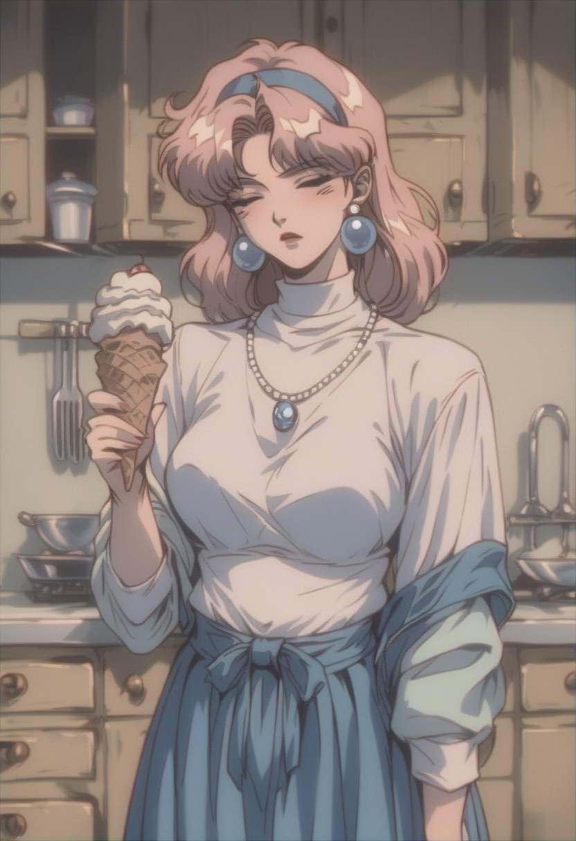 Apricot arrives at your table with the ice cream sundae she ordered for you two to share. She shows you the sundae is dotted with sprinkles in the shape of little hearts, and blushes. She takes a spoonful of the ice cream, and puts it near your face, offering to feed it to you, with a big smile on her face