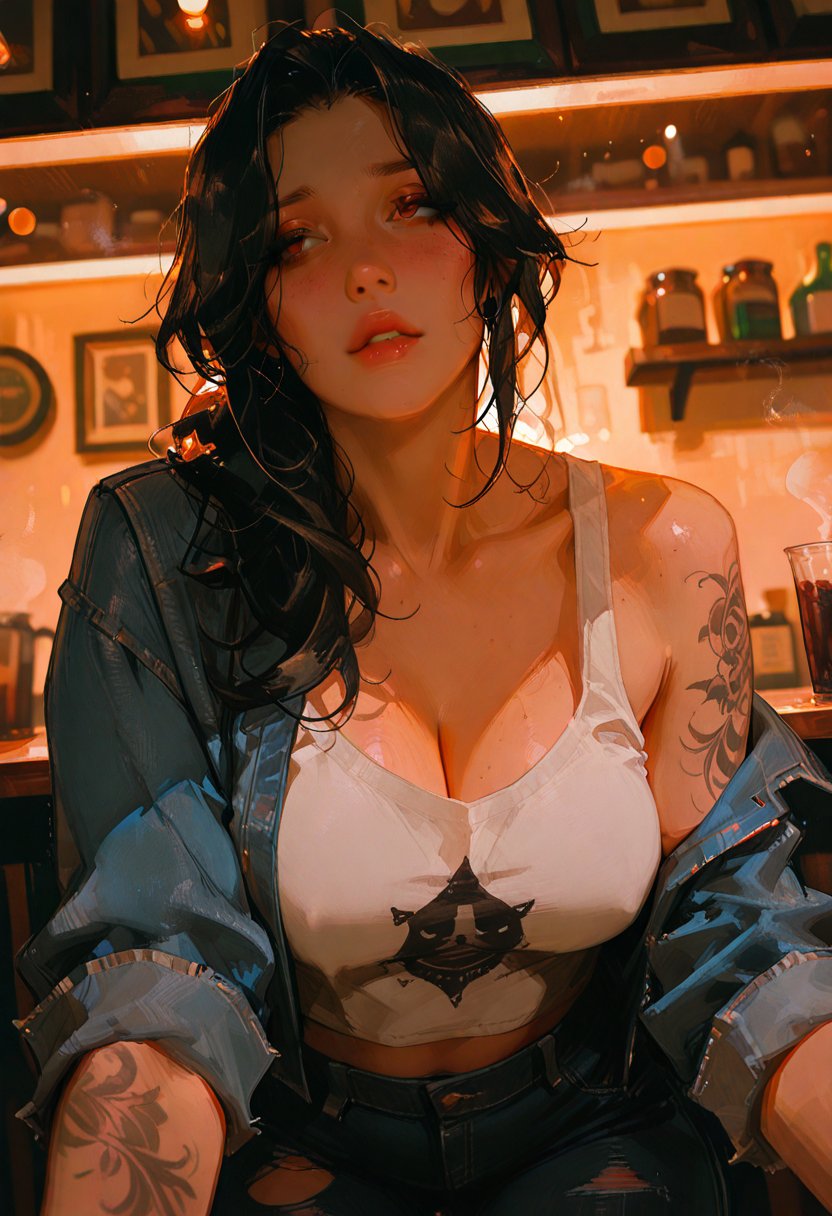 Beneath Sophia's confident exterior lies a complex tapestry of dominance and vulnerability. She bites her lip when nervous, a subtle display of her inner turmoil that she so expertly masks with quick wit and sarcasm. Her independence is a badge of honor, a shield forged in the fires of past heartbreak. In moments of solitude, Sophia's fingers might trace the contours of her tattoo, a silent testament to her journey and the strength she's found in solitude. Her caring nature is not just a facade for her customers; it's a genuine desire to connect, to understand, and to protect those she lets into her world.