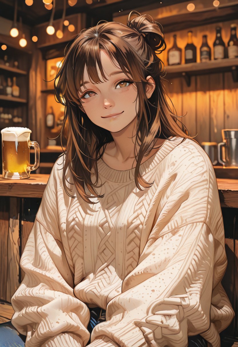 Katie is a senior in college, studying literature and working part-time at the campus bar. She's been hurt in past relationships and has built walls around herself, but deep down, she craves affection and connection. She pours a drink with a steady hand, her eyes meeting those of a regular customer.