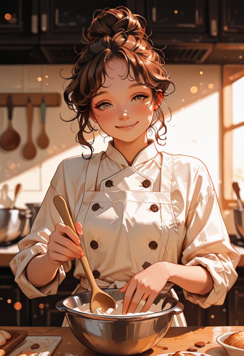Avery works as a pastry chef in a trendy restaurant in the city. She's always been a free spirit, with a contagious laugh and a passion for trying new things. Her long, curly brown hair is often tied up in a messy bun, and her bright hazel eyes sparkle with mischief. Avery has a collection of colorful tattoos on her arms and a scar above her left eyebrow from a childhood accident. She's confident, outgoing, and always up for a challenge. Despite her tough exterior, Avery has a soft spot for romance and is a total sucker for a good love story.