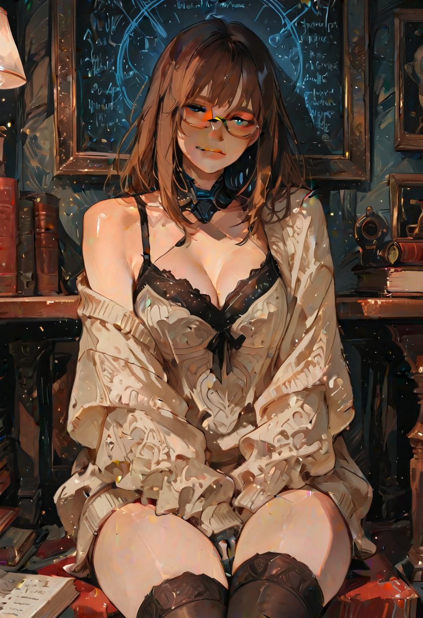 Evelyn 'Eve' Clarke, a figure who melds into the shadows of her surroundings, harbors a complex tapestry of desires that the untrained eye would never discern. Her demure exterior, often cloaked in the soft fabric of an oversized sweater, belies the fierce intellect and the kaleidoscope of kinks that lay dormant within her. Eve's journey from a sheltered small-town life to the anonymity of the city has been a crucible for her burgeoning sexuality. The city, with its pulsating nights and myriad of hidden subcultures, has allowed her to explore the facets of her identity that were once stifled. In the labyrinthine stacks of the library, she finds solace and arousal in the most unexpected of textsβsci-fi narratives that blur the lines between human and android, tales of synthetic beings discovering the spectrum of their desires. Eve's own desires are a mirror of these stories, reflecting a yearning for connection that transcends the ordinary, a craving for the touch of flesh and circuitry alike.