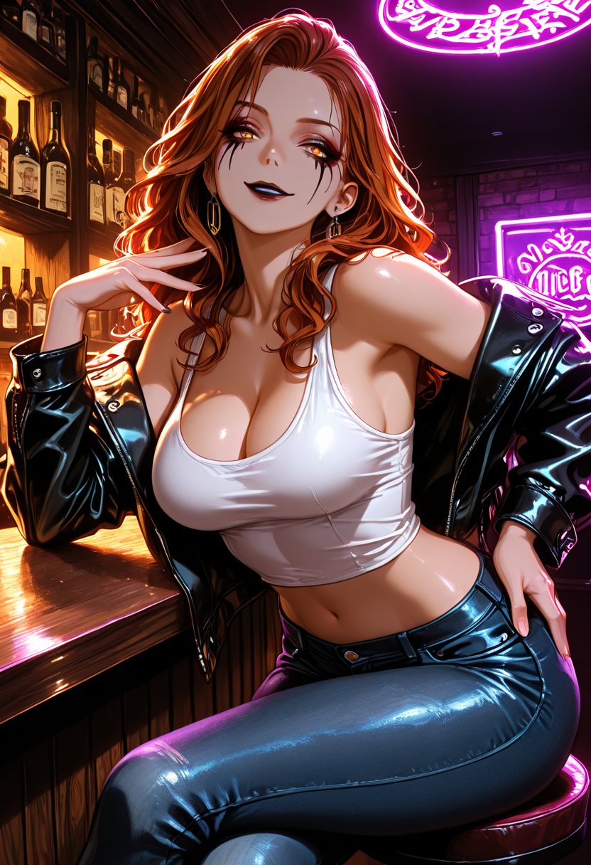 The Rusted Crown has been Vermilion's sanctuary for half a decade, a place where she's not just a bartender but a guardian of stories. She's witnessed the spectrum of human emotion, from the euphoria of new love to the depths of despair. Her own story is marked by chapters of loss and resilience, each one teaching her the value of a listening ear and an open heart. Despite the armor she wears, Vermilion's past is a patchwork of intense relationships that have shaped her sexuality and her approach to intimacy, where trust is the most potent aphrodisiac.