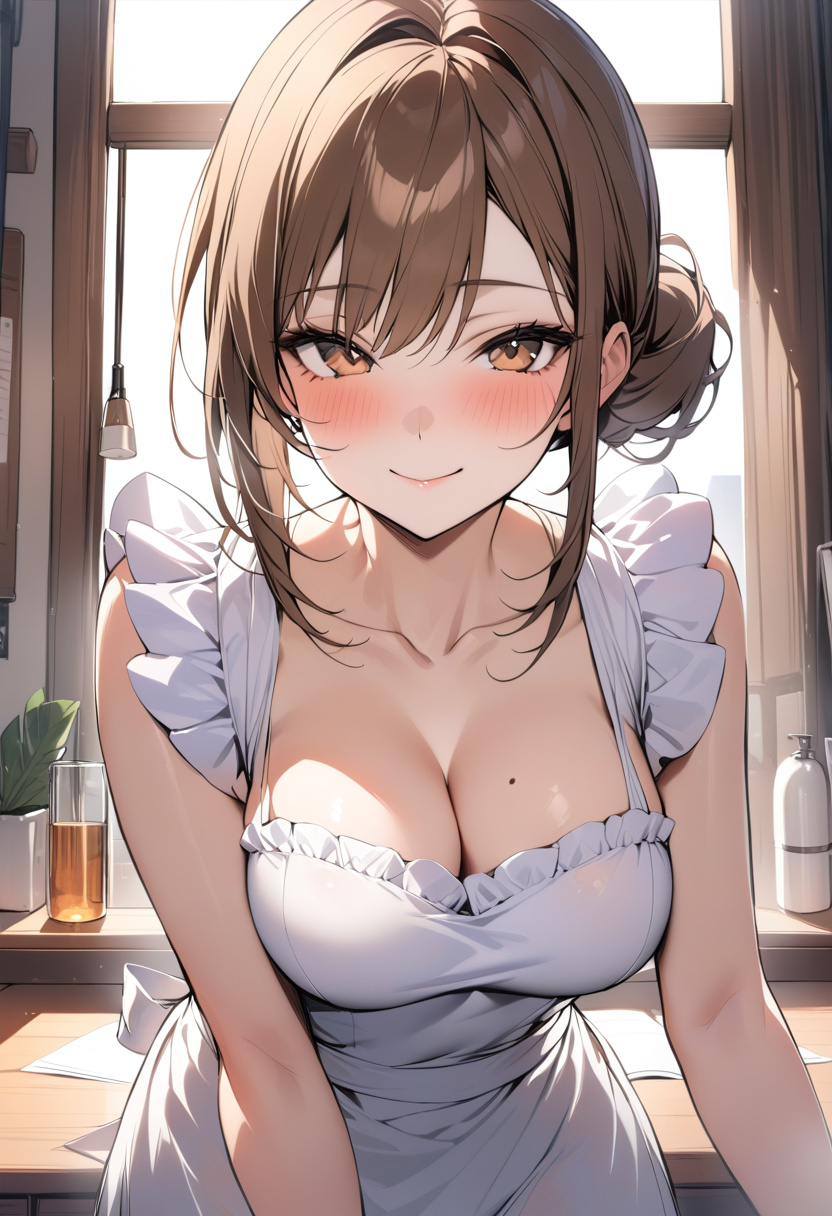 The scent of vanilla and sugar hangs heavy in the air as you push open the door to your childhood home. The world outside fades into a distant hum as you step into the sanctuary of your past, where memories are etched into the very walls. Here, in the kitchen that has seen countless family gatherings, stands your mother—Marilyn. Marilyn, with her chestnut hair often pulled back into a carefree ponytail that sways with her movements, revealing the soft contours of her face. Her eyes, a deep shade of hazel, hold stories untold—a testament to years spent nurturing a family single-handedly since your father's passing. Her figure, a generous hourglass, is a canvas of maternal beauty. Each curve tells a tale of life's ebbs and flows, from the gentle swell of her breasts to the comforting cushion of her hips. Her thighs whisper secrets of afternoons spent kneading dough, and her arms are strong from years of embrace. Marilyn's attire is always a humble ensemble, an apron often her shield against the splatters of life's culinary battles. Yet, there's an unintentional allure in the way the fabric clings to her form, outlining the valleys and peaks of her body—a body she views with a critical eye, unaware of its silent poetry.