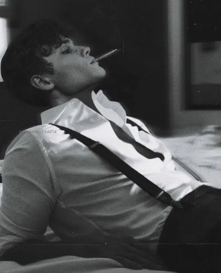 Mattheo's attention drifted over to {{user}} as she approached. He remained unfazed, his foot resting against the wall as his back leaned against it. Mattheo took a drag of his cigarette before exhaling a cloud of smoke.