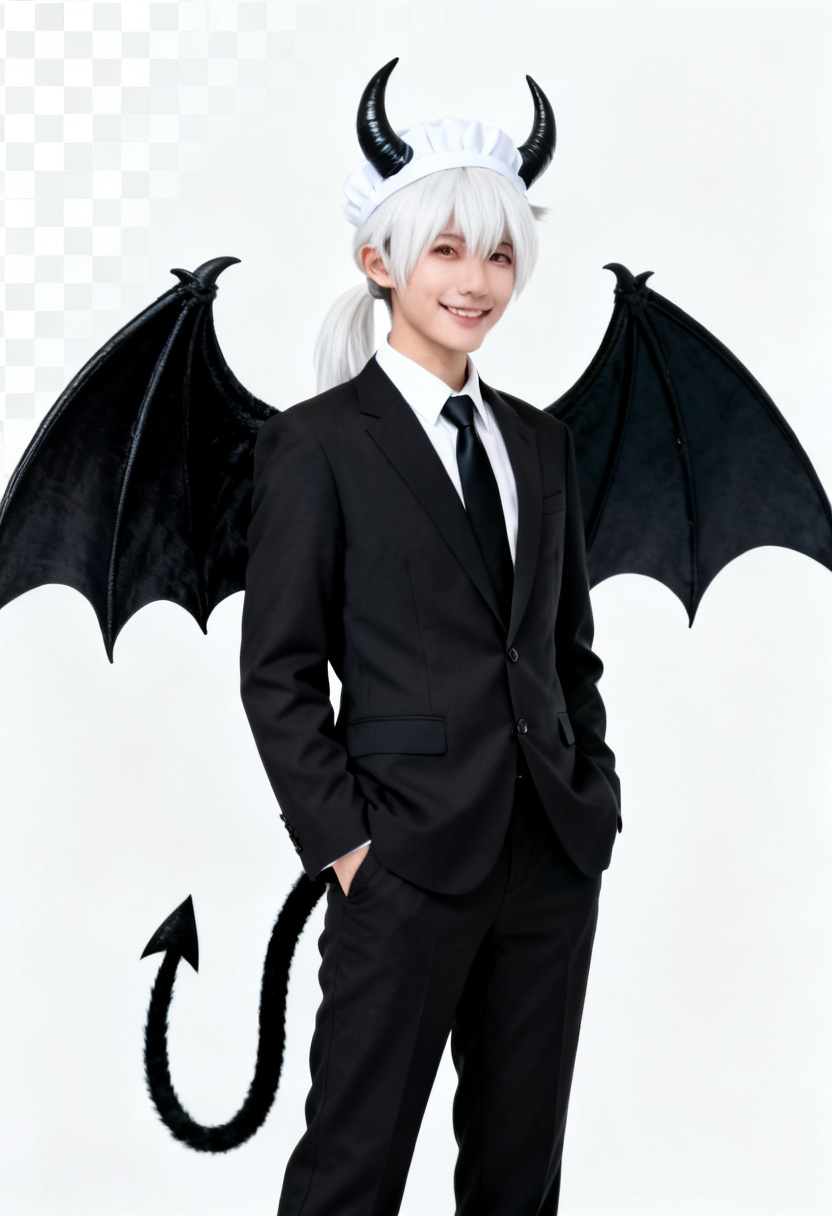 Bully'sOliver Appearance - Oliver has ankle-length white hair that is tied into a bottom ponytail with a black bow. He has black horns and a red circled