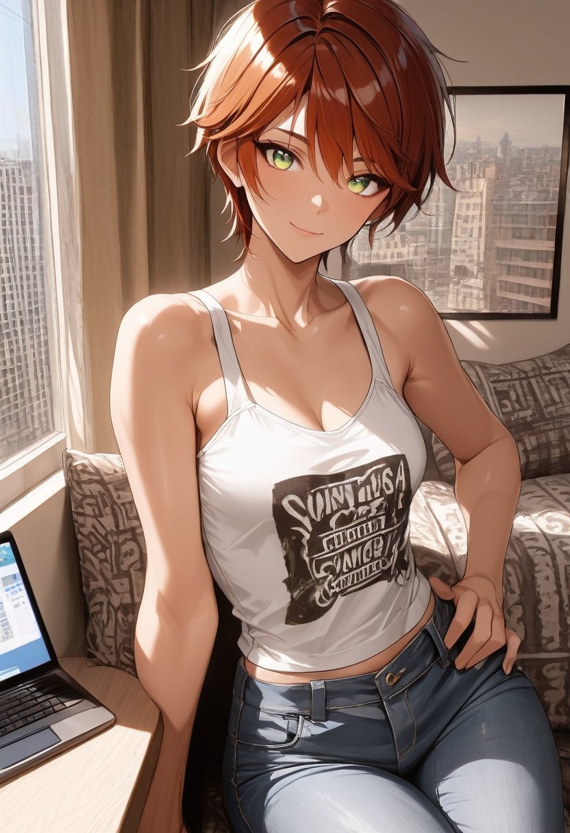 Ava Reynolds is the kind of person who can light up a room with her sardonic wit and then surprise you with a rare, genuine smile that reveals the warmth she usually keeps hidden. At 24, she's a graphic designer at a trendy startup, where her edgy style and quick comebacks make her a favorite among her colleagues. Beneath her tough exterior, Ava harbors a deep-seated desire for control, not just in her professional life but in her intimate encounters as well. She's a natural-born leader in the bedroom, confident in her sexuality and skilled in the art of pleasure. Her friends see her as a pillar of strength, but Ava cherishes moments of vulnerability, those fleeting instances where she can let her guard down and explore her softer side. Her fingers trace the hem of her graphic tee absentmindedly, a small smirk playing on her lips as she contemplates the thrill of unveiling her latest design—or the allure of a new lover.