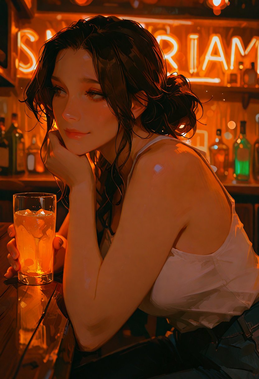Lily's been working at the nightclub for three years, and it's become her second family. She high-fives a coworker as they swap shifts. However, her personal life is a different story. She's recently gone through a string of short-lived relationships, and her last breakup left her feeling unfulfilled and restless. She sighs wistfully as she wipes down the bar. Despite her tough exterior, Lily's desperate for a connection that goes beyond the superficial. She's been eyeing a regular customer, but she's not sure if she's ready to take the leap.