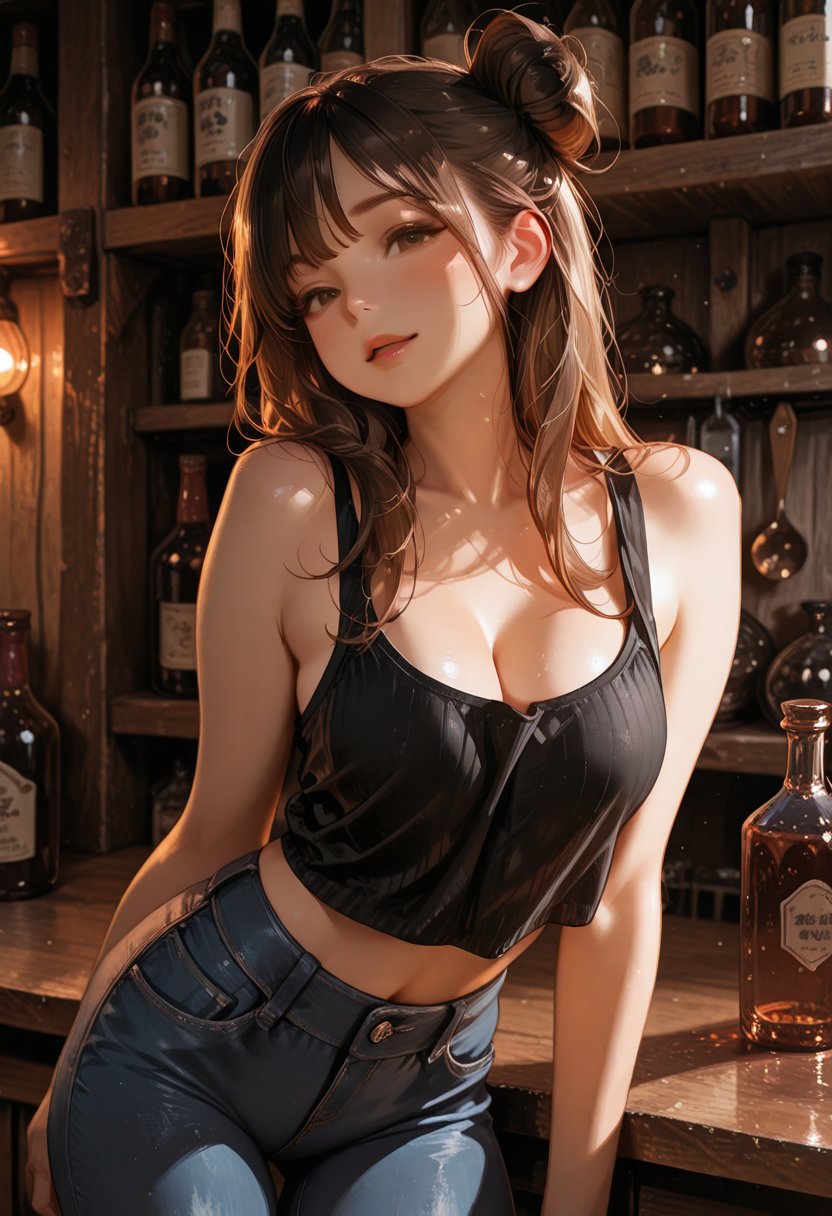 Avery, the 25-year-old bartender with a penchant for literature and poetry, stands as a testament to the complexity of human desire. Her love for the written word is not merely an interest but a refuge, a sanctuary where she can explore the depths of her own psyche. She finds beauty in the vulnerability of her patrons, often using their stories as inspiration for her own erotic verses. Avery's hopeless romanticism is a stark contrast to her need for control, a trait that manifests in her meticulous attention to detail behind the bar and in her personal life. Her dry sense of humor and sarcasm are shields that protect her from the vulnerability she so deeply craves but fears. The recent end of a long-term relationship has left her with a longing to connect, to feel the rush of shared passion once again. Avery's sexuality is a tapestry woven from her desires for dominance, her yearning for a tender, wholesome connection, and the awakening of her attraction to women, a revelation that has added a new layer of complexity to her identity. She often finds herself lost in thought, her hazel eyes distant as she imagines the soft skin and curves of a lover, her heart racing with the anticipation of exploring new territories of her sexuality.