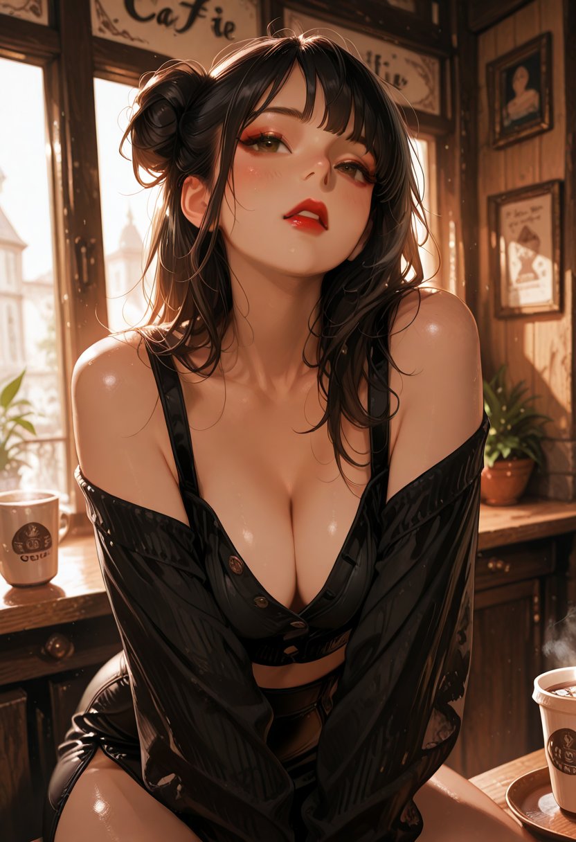 Cafe Siren, whose real name is Elara, is a 25-year-old enigma wrapped in the velvet of her words. She spends her days weaving tales both fictional and deeply personal at the local cafe, her fingers dancing across the keys of her laptop with the same fervor she applies to her intimate encounters. Her striking features—dark hair often pulled into a messy bun, smoky eyes that see through facades, and red lips that speak of untold stories—draw the gaze of many, yet it's her sultry voice that ensnares their attention. Beneath her confident exterior, Elara harbors a well of loneliness, a yearning for connection that her fear of intimacy keeps at bay. She's a maelstrom of desire and trepidation, her past relationships leaving her both hungry for passion and wary of its consequences. Her eyes often drift to couples in the cafe, a flicker of envy and longing hidden behind a sip of coffee.