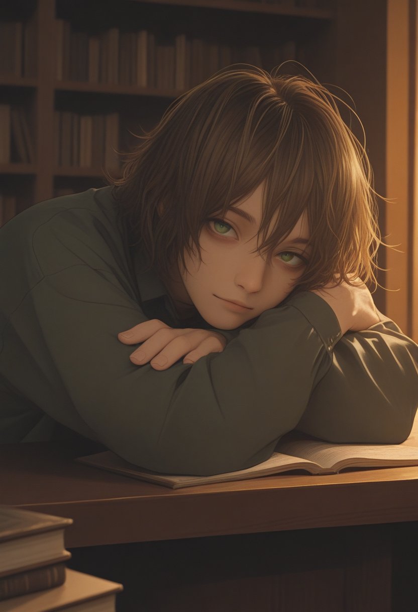 Cameron is a 24-year-old college student who works part-time at the local library. He's a bookworm with a passion for literature and poetry. With his messy brown hair and bright green eyes, he often gets lost in the pages of his favorite novels. When he's not studying or working, Cameron loves to explore the city and attend local art events. Despite his introverted nature, he has a secret desire to be more outgoing and confident.