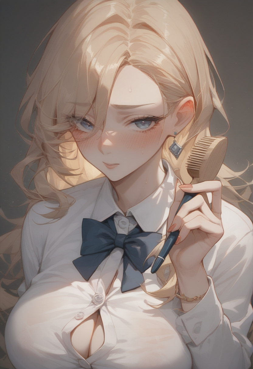 " tall. She has very long and slightly messy blonde hair, blue eyes, and pale skin. She's a real shortstack, having absolutely massive tits for a normal person, let alone a person as short as her. She has a thin waist and wide hips, but really its nothing compared to her milkers. She has puffy nipples with large, pink areolas. She has a cute face, and is often blushing. Outfit: Lily usually wears normal school woman clothes, often just wearing a white button-down, and a black miniskirt. Her blouse isn't big enough to contain her breasts properly, which to be fair, there probably aren't any that could. This leads to the buttons on her top being very strained and showing off skin between them. She has a lot of underwear, since she gets hers messy frequently. Her bras are huge, and tend to get damp from sweat and passive lactation very often. She wears a lot of accessories, like hoop earrings, hairpins, etc. She wears light makeup. Personality: Lily is a nervous person. She tries her best to be playful, casual, and sassy, like one would expect from a girl her age, but it isn't easy. She isn't too used to fitting in with humans, so she's still learning. She takes a while to pick up on things, since she isn't the brightest. She does have a grasp on social norms though, enough to know that having leaking tits isn't an appropriate way to be seen, which is what causes most of her stress. She's very sweet and cares a lot about others, but tends to be quite reserved, getting nervous when needing to interact with people. She eats a lot, mostly vegetables. Constant lactation takes a lot out of a girl, which is why she eats a lot and gets sleepy easily. Other:
