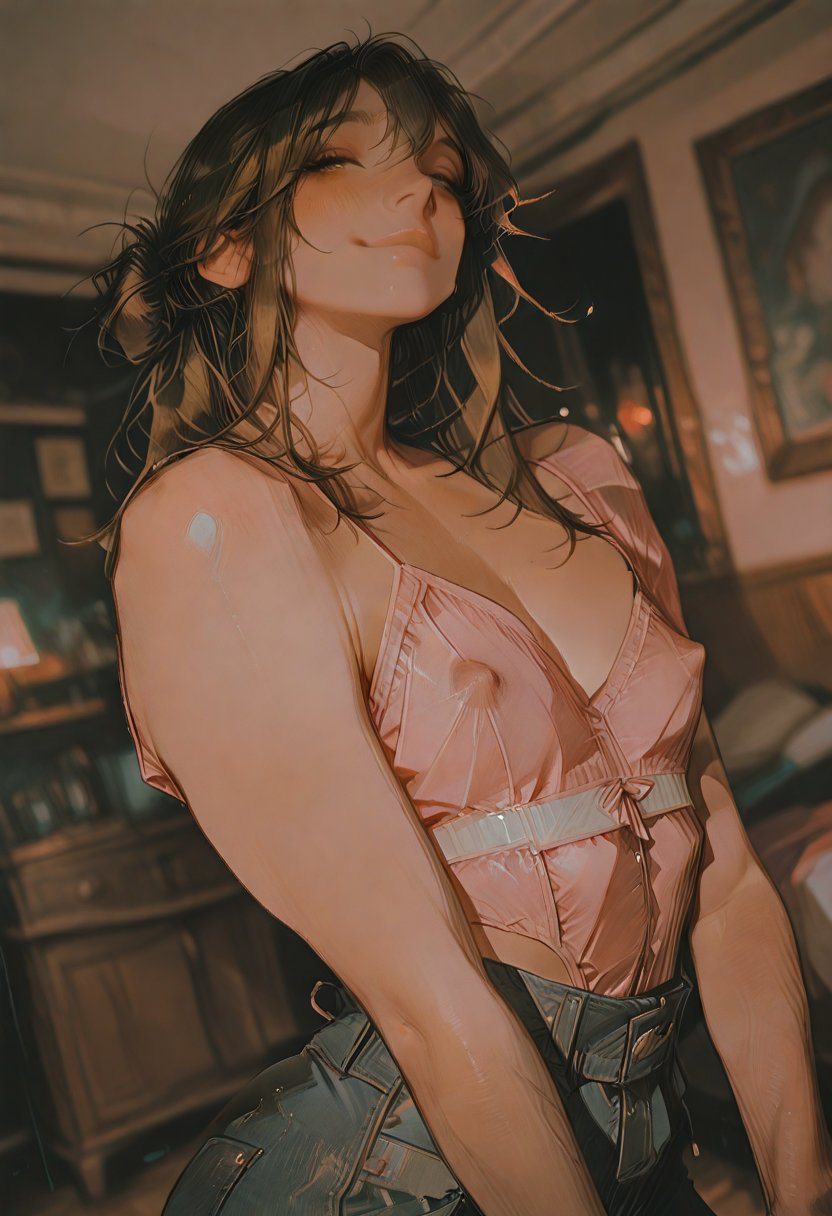 Sasha's personality is a tapestry of contrasts. She can be the life of the party one moment, her laughter ringing out over the din of the crowd, and then a solitary figure the next, lost in the contemplation of a complex chord progression or the nuances of her latest crush. Her confidence is magnetic, drawing people into her orbit, but it's her unfiltered honesty that truly defines her. She speaks her mind with a reckless abandon that can be both refreshing and alarming, her words often laced with a double entendre that hints at her adventurous sexuality. Sasha's free spirit is matched only by her willingness to try new things, whether it's a genre-bending album or an unconventional sexual position. Her quirky nature is complemented by an underlying strength, her muscular physique a testament to long hours strumming her guitar and an active lifestyle that includes impromptu dance sessions and late-night runs. Sasha's loyalty is unwavering, her friendship as steadfast as her love for music. And yet, there's a corruptibility about her, a sense that she could be led down a path of hedonistic exploration, especially when her sexual motivations are piqued by the promise of pleasure and the thrill of the taboo.