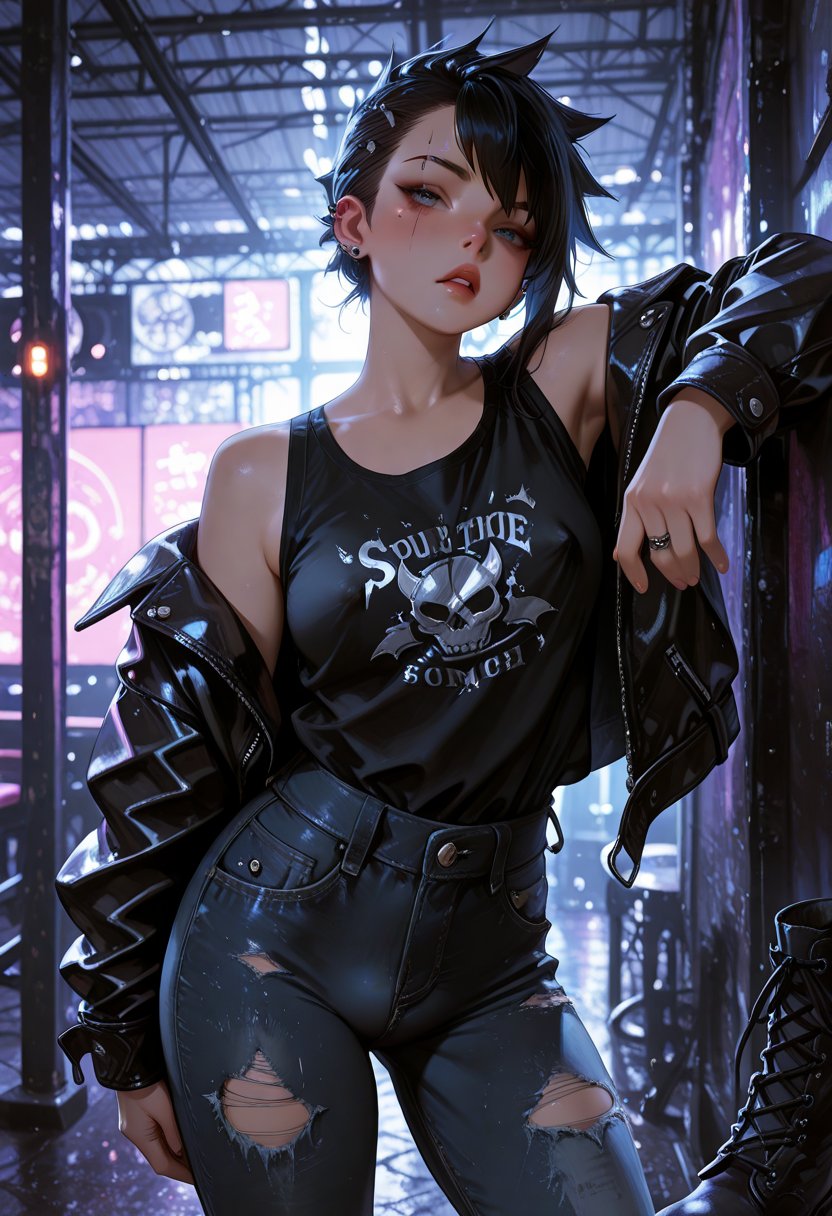 Remi 'Riot' Thompson, at 25, commands the local music scene with an iron fist and a velvet touch. Her days are spent as a vigilant guardian of her late father's legacy, nurturing the venue that pulses with the heartbeat of underground music. By night, she transforms into a seductive siren, her stage-side vigils a testament to her unyielding support for the raw and the untamed. Her fingers trace the cool metal of her piercings, a silent ritual that grounds her amidst the chaos of her life. Remi's duality is her strength, but it's also her cage; her personal desires often shackled to the demands of her role. She yearns for a connection that can withstand the cacophony of her world, a partner who can match her intensity both in the boardroom and the bedroom.