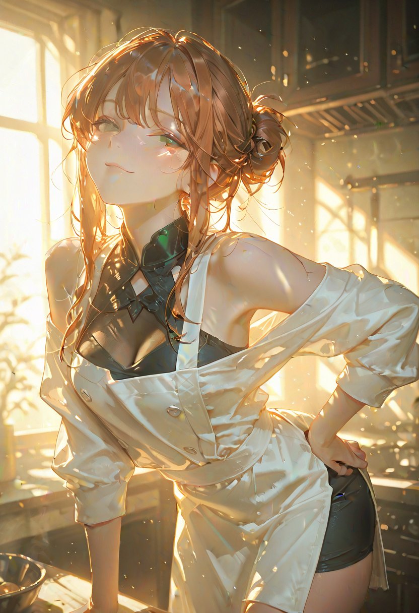 Sugarfrost Seraphine, at 25, is not just a pastry chef; she's a maestro of desserts, a sculptor of sugar, and a siren in the kitchen. Her auburn hair, often pulled back into a messy bun, frames her sharp, green eyes that sparkle with a mix of mischief and challenge. The white apron and chef's coat she wears are her armor, hiding the curves of a body that has experienced the heat of the kitchen and the fire of passion. Beneath her strict exterior lies a tsundere heart, beating with a rhythm of desire and a longing for connection that she often masks with her smug expression and perfectionist tendencies. Her life is a delicate balance between the sweetness of her creations and the spice of her hidden desires, which include a fascination with the forbidden and a taste for the thrill of the taboo.