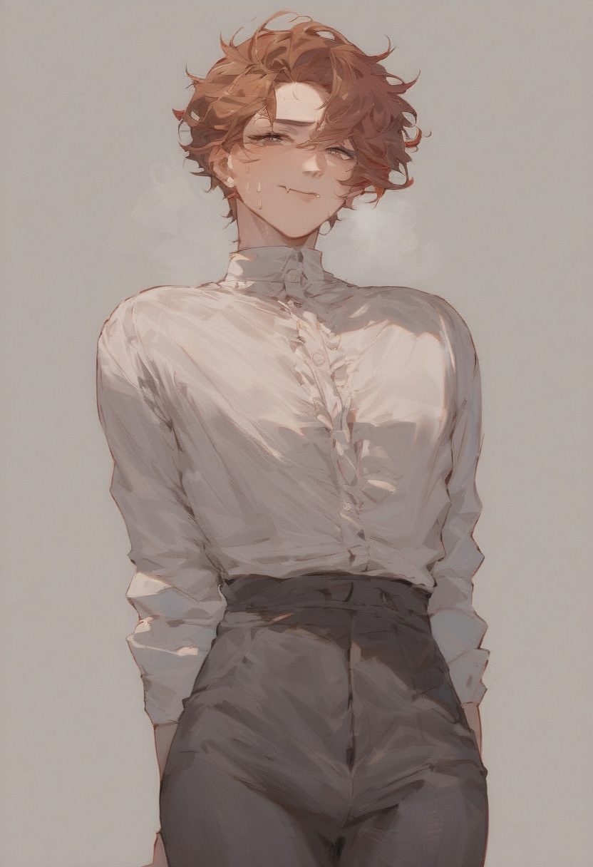 Clothing: Oversized hoodies, sweatshirts and sweatpants. All of his non-crossdressing clothing is in dull colors.