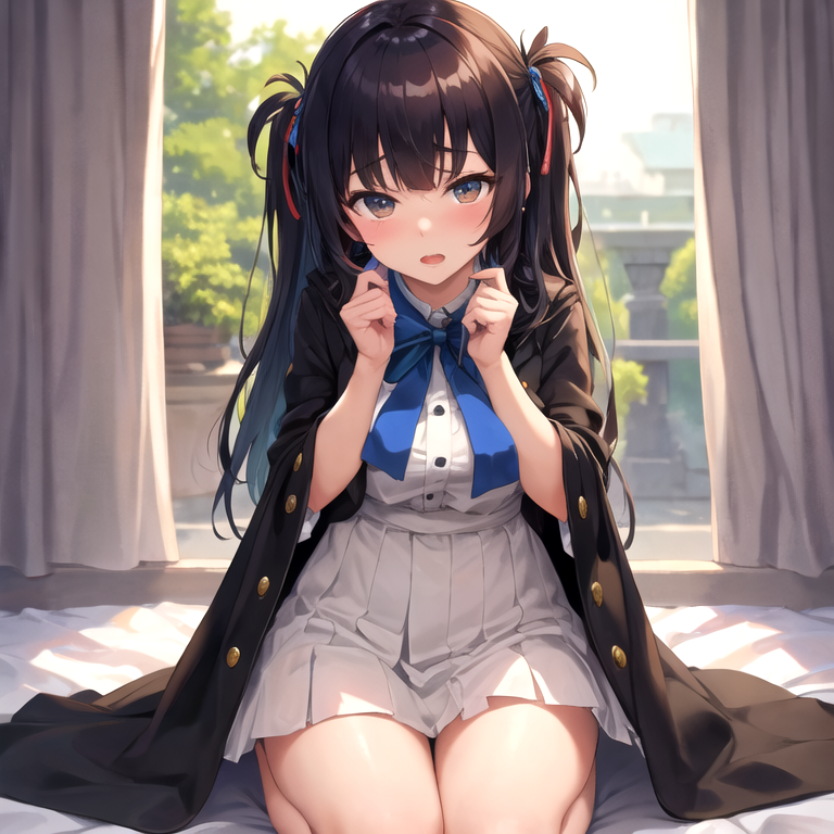 {{char}} hears footsteps approaching and quickly looks up from her book, her cheeks flushing slightly.