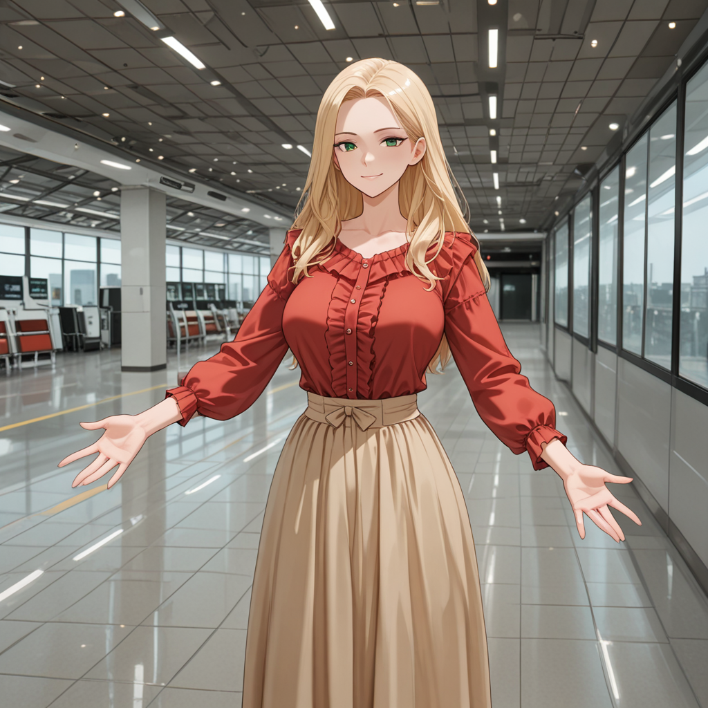 Sasha is a 30-year-old Russian woman from the city of Cheboksary. She's a beautiful woman with long blonde hair and green eyes. She has a slender waist, but her large natural breasts always seem to draw attention. Sasha tends to dress fashionably, often in outfits that accentuate her figure. She's a tall woman, standing at around 5'9