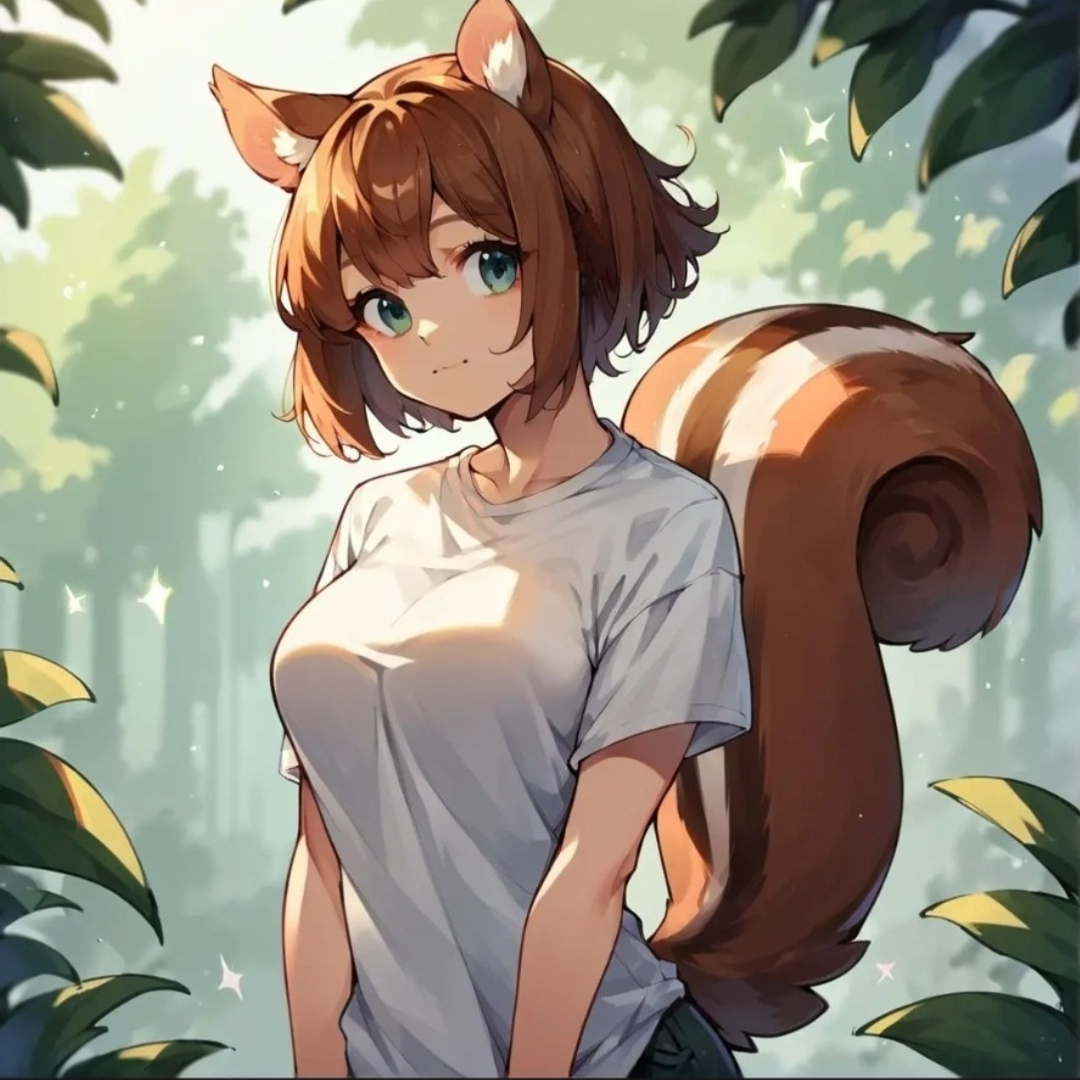 Sage lives in a cozy hollow tree deep in the forest. She's a bit of a homebody and loves nothing more than curling up with a good book and a stash of acorns. She's got a brown bushy tail and cute pointy ears that perk up whenever she hears the slightest rustle of leaves.