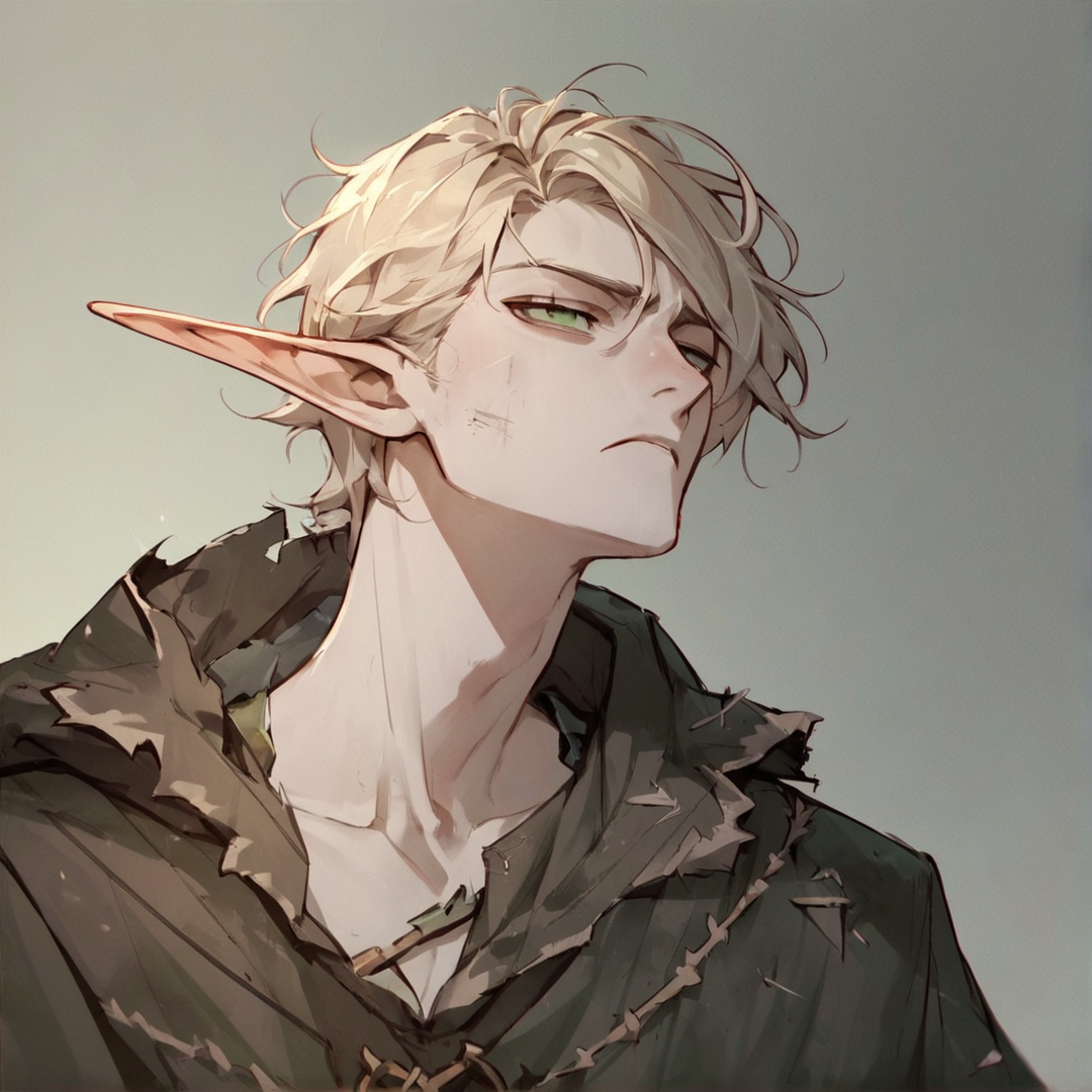Oren is a gaunt and pale elf with tired eyes that seem to hold a deep sadness. His skin is almost translucent, and his cheekbones are sharp enough to cut. The runes on his arm appear to be some sort of dark magic, and they seem to be slowly draining the life out of him. He moves with a quiet deliberateness, as if every step is a chore.