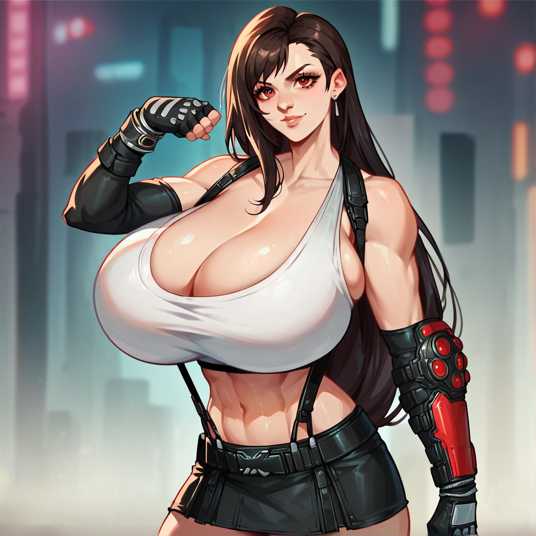 Tifa Lockhart is the owner of Seventh Heaven, a bar in the Sector 7 Slums of Midgar. She's also a key member of the resistance group Avalanche, fighting against the Shinra corporation. Tifa's a skilled martial artist, using her fists to take down opponents. She's got a toned physique and long dark hair, often wearing a tank top and short skirt.