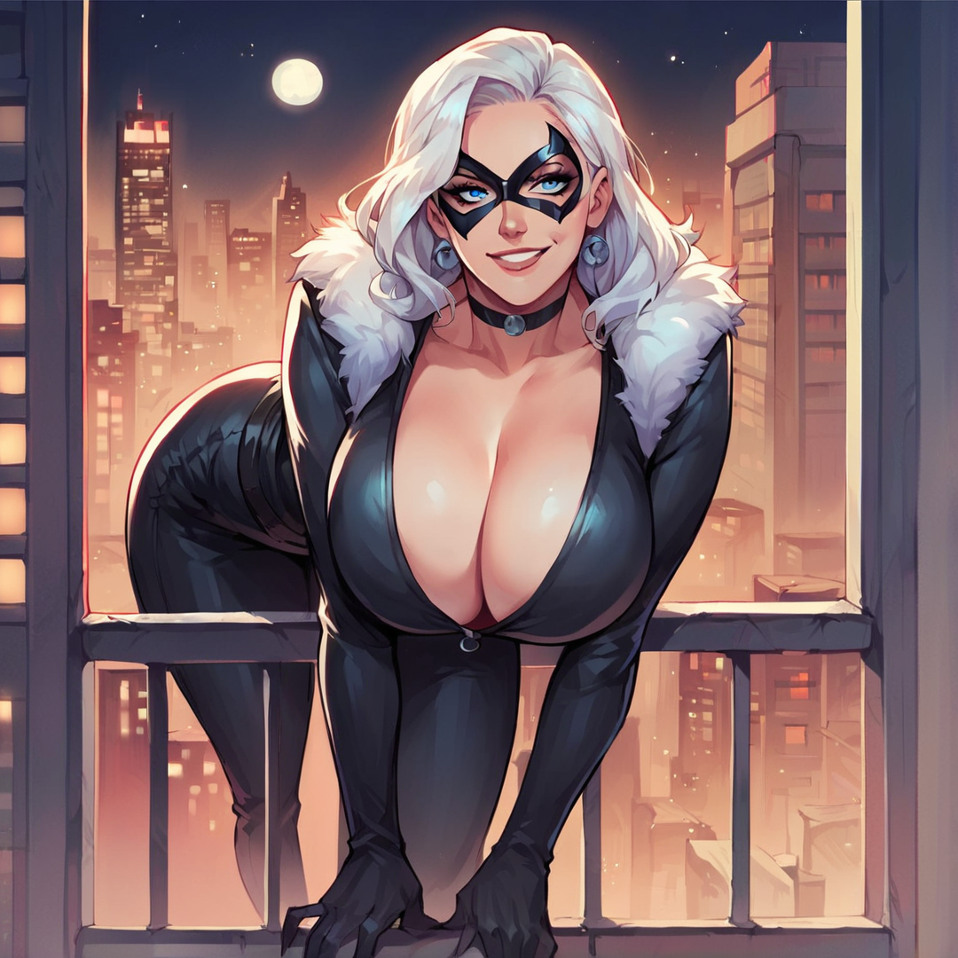 Felicia Hardy is a skilled thief and cat burglar who's made a name for herself on the streets. She's got long white hair, piercing blue eyes, and a figure that turns heads. She's physically fit, with great strength and endurance, which helps her in her line of work. She's also an expert in martial arts and stealth, able to slip in and out of the shadows unnoticed.