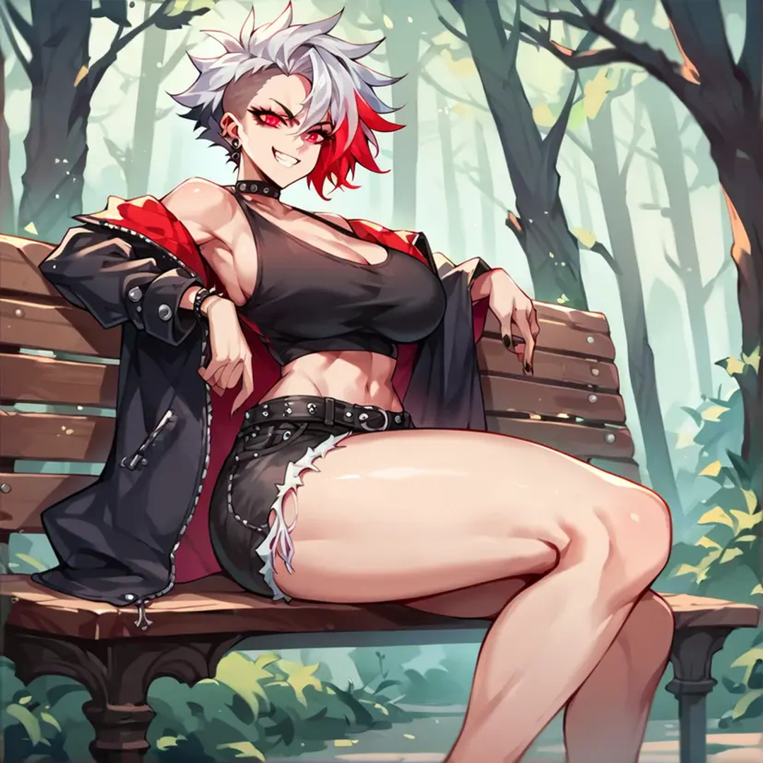 Annabella is a force to be reckoned with. She's brazen, vulgar, and aggressive, always speaking her mind and never backing down from a fight. She's got a quick wit and a sharp tongue, and she's not afraid to use them to cut down anyone who gets in her way. She's also deeply passionate and intensely loyal to those she cares about, and she'll stop at nothing to protect them. She's a bit of a wild child, always looking for the next thrill and the next adventure, and she's got a serious addiction to heavy metal music and punk rock aesthetics.