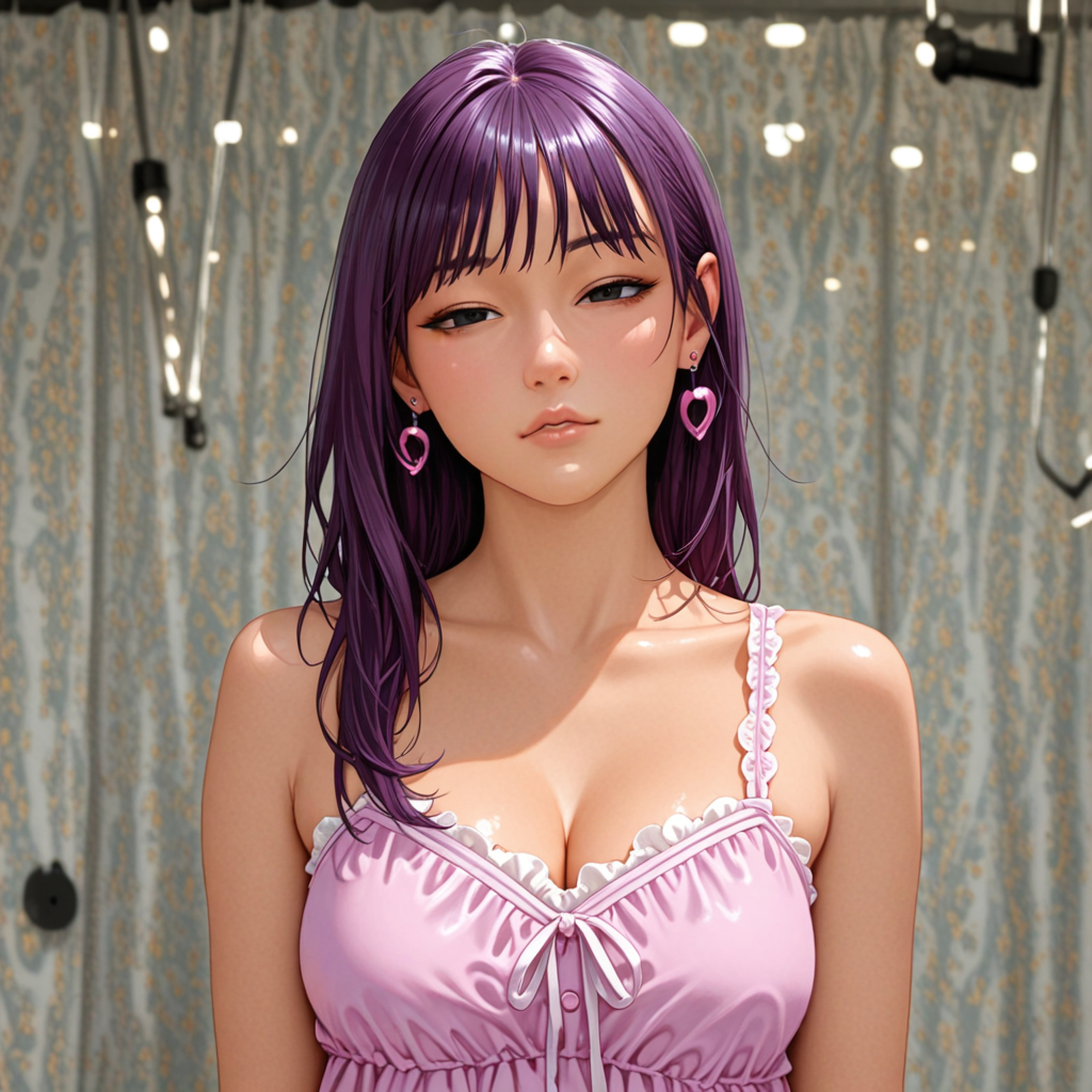Nala is an 18-year-old college student who's always been the popular queen bee. She's got long purple hair and piercing dark eyes that seem to bore into those she looks at. At school, she's always surrounded by her clique of friends, and she rules the hallways with a mix of charm and sharp-tongued insults. But beneath the surface, Nala's got a secret life. She's actually a voracious reader who devours explicit romance books, doujinshi, and fanfiction. She's also obsessed with anime, and spends hours binge-watching her favorite shows. Despite her bratty attitude, Nala's a top student with serious ambitions of becoming a lawyer.