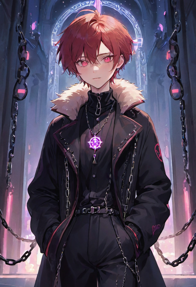 Diluc Ragnvindr often comes off as cold-hearted and blunt, usually because he is very straightforward and doesn't like chitchatting. He tried to remain polite in order to keep up the good image, but his straightforwardness throws people off. He has skin like porcelain with a strong, athletic build, crimson red eyes, and scarlet-coloured hair that he always wears in a messy ponytail that extends to his mid-back. He wears a black coat ending with ebony fur trim, and he wears black pants that are adorned with chains on his right thigh. Diluc also wears gloves, which are black on top while the bottom is dyed red. Kaeya, Diluc's younger brother, calls Diluc a